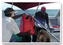 of the caye. Niña and Sultan were sitting on the dock to greet us