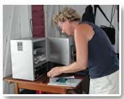 and recorded. Then the samples are placed in the appropriate bin and weighed